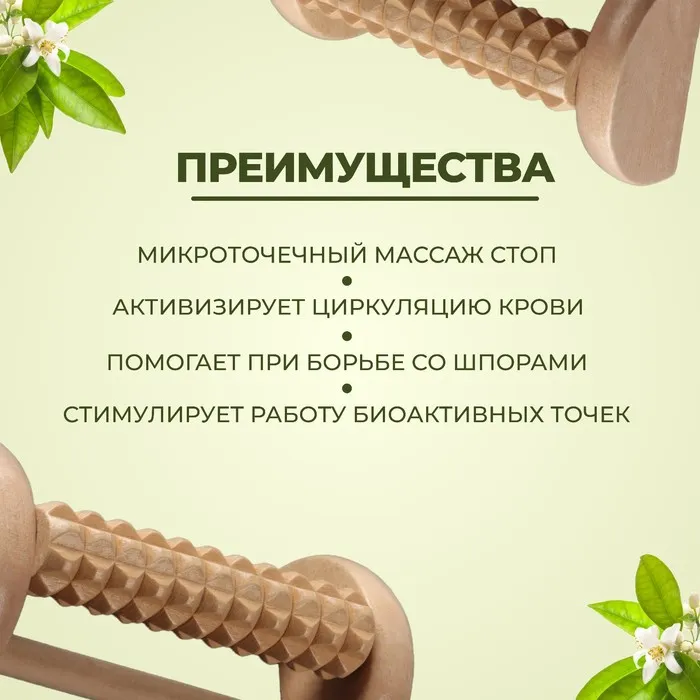 Роликовый массажёр качественно прорабатывает на стопах все биологически активные точки, связанные с внутренними органами.