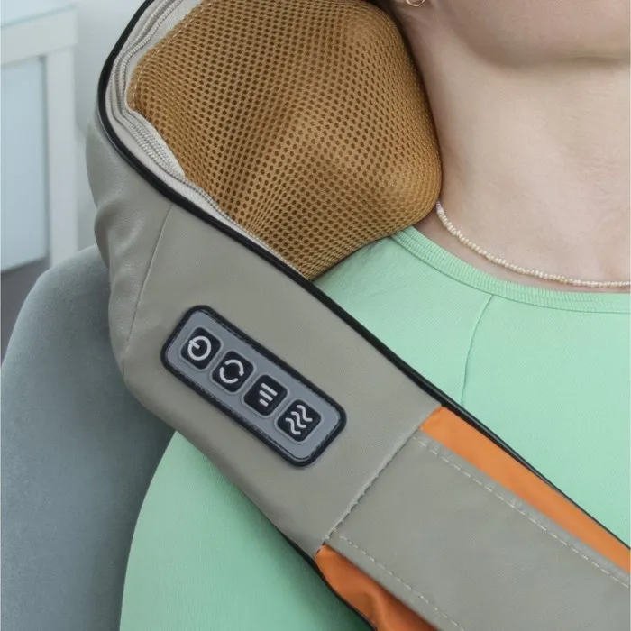 Роликовый массажёр LuazON LEM-21 позволяет разогревать и разминать мышцы шеи, спины и плеч.