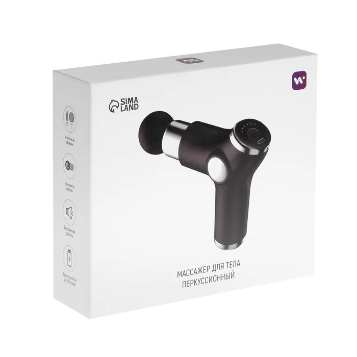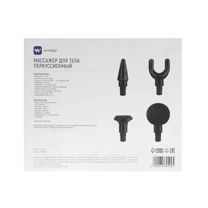 Массажёр для тела Windigo LEM-02, перкуссионный, 4 насадки, 6 режимов, чёрный — Характеристики