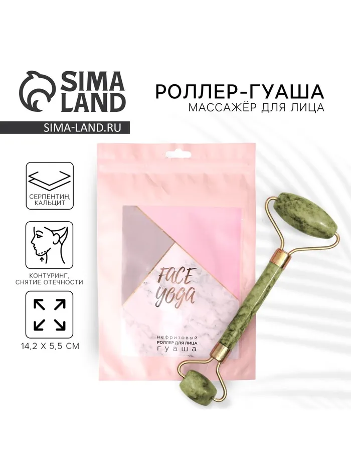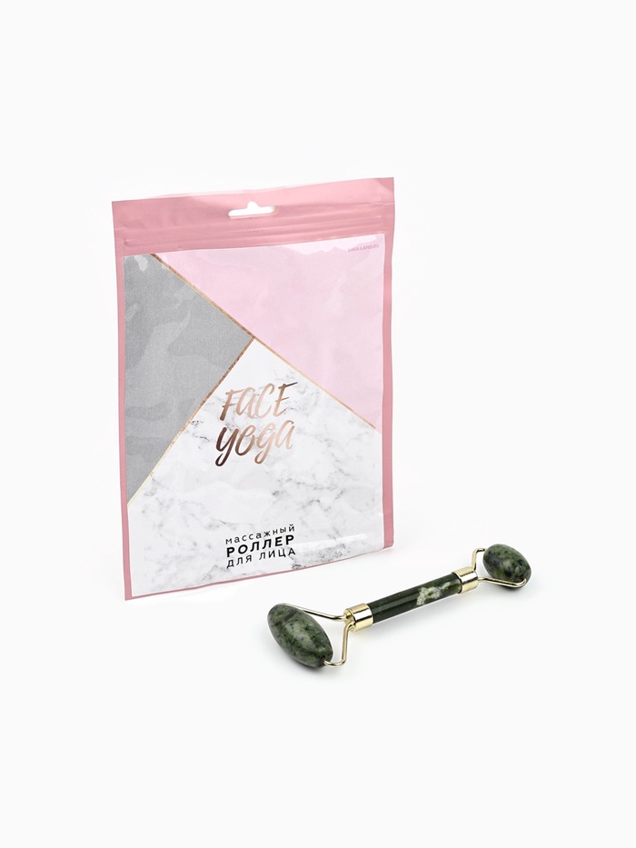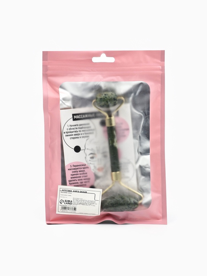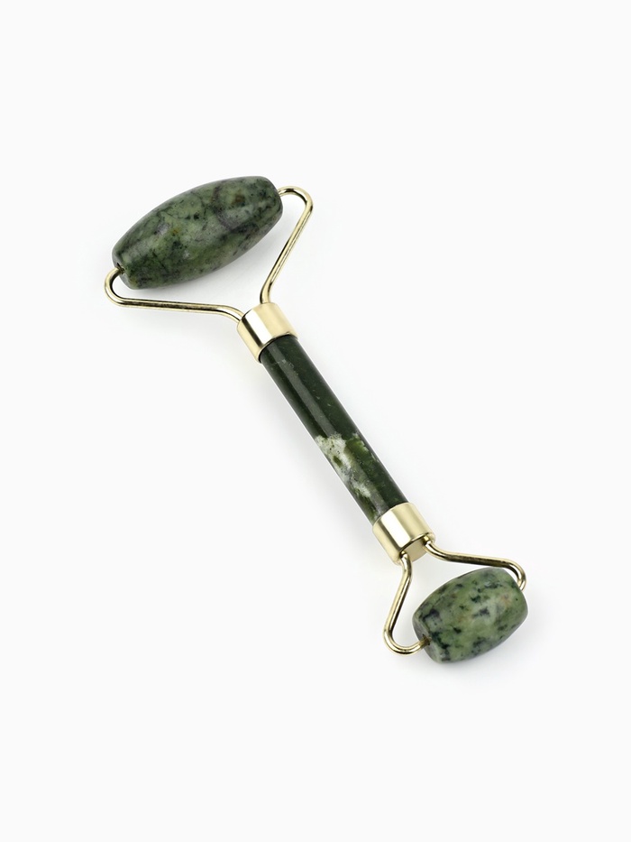 Роликовый массажёр сделан из натуральных камней – кальцита и серпентина. Ролик помогают снять отёчность лица, уменьшить количество морщин, подтягивает кожу, тонизирует её.