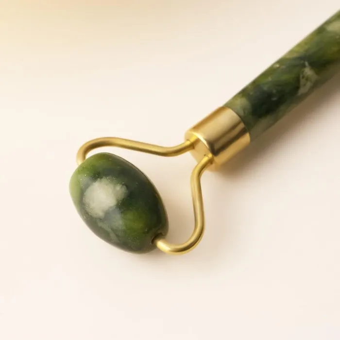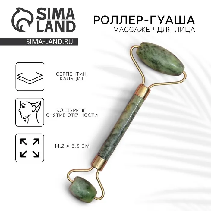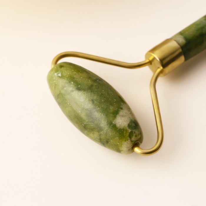 Роликовый массажёр сделан из натуральных камней – кальцита и серпентина. Ролик помогает снять отёчность лица, уменьшает количество морщин, подтягивает кожу, тонизирует её. Способ применения: очистите лицо, нанесите увлажняющую сыворотку или масло. Возьмите массажёр и начните мягко нажимать на него. Двигайтесь по массажным линиям по 3 раза. Для придания коже тонуса массажёр можно положить в холодильник, если хочется расслабления, то лучше предварительно подержать его под теплой водой.