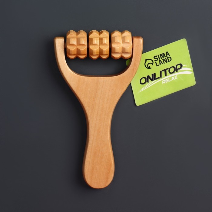 Массажёр роликовый, деревянный, с ручкой, универсальный, 14.5×8×3 см, 3 барабана — Характеристики
