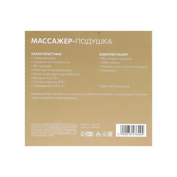 Устройство работает от аккумулятора, поэтому вы можете наслаждаться массажем не только дома, но и в поездке или на даче. Рекомендуем проводить процедуры массажа по 15 минут с перерывами в 20 минут.