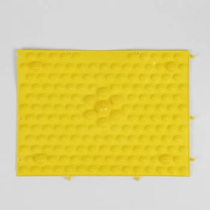 Поверхность коврика покрыта выступами разной высоты. Это оказывает различное давление на рефлекторные зоны и вызывает сокращение мышц стопы. Каждая часть коврика имеет крючки и отверстия, которые позволяют соединять вместе другие элементы.