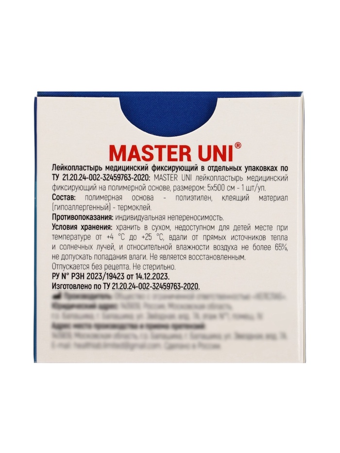 MASTER UNI лейкопластырь медицинский фиксирующий на полимерной основе, см: 1x500