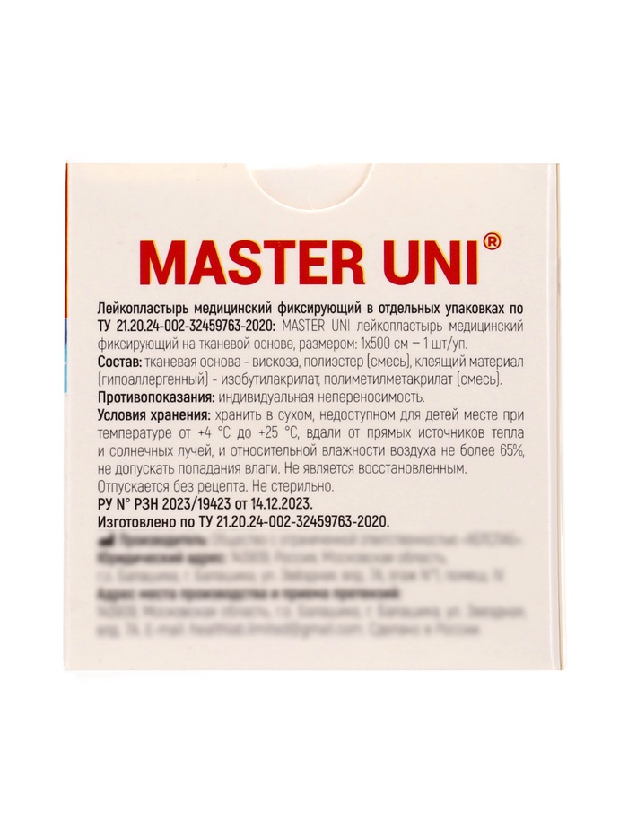 Бренд MASTER UNI - большой ассортимент лейкопластырей