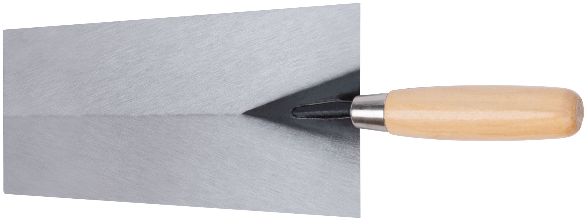 Изготовленный из инструментальной стали, этот мастерок отличается прочностью и долговечностью. Деревянная ручка обеспечивает удобный хват, снижая усталость даже при длительной работе. Габариты инструмента составляют 310x120x70 мм.