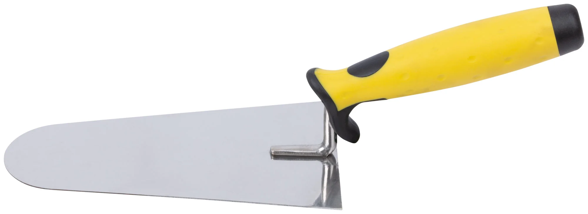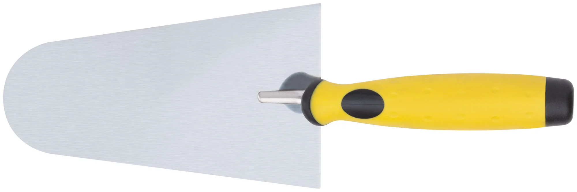Мастерок изготовлен из высококачественной нержавеющей стали, что обеспечивает долговечность и устойчивость к коррозии. Мягкая прорезиненная ручка снижает нагрузку на кисть и обеспечивает удобный и надежный захват, что особенно важно при длительных работах.