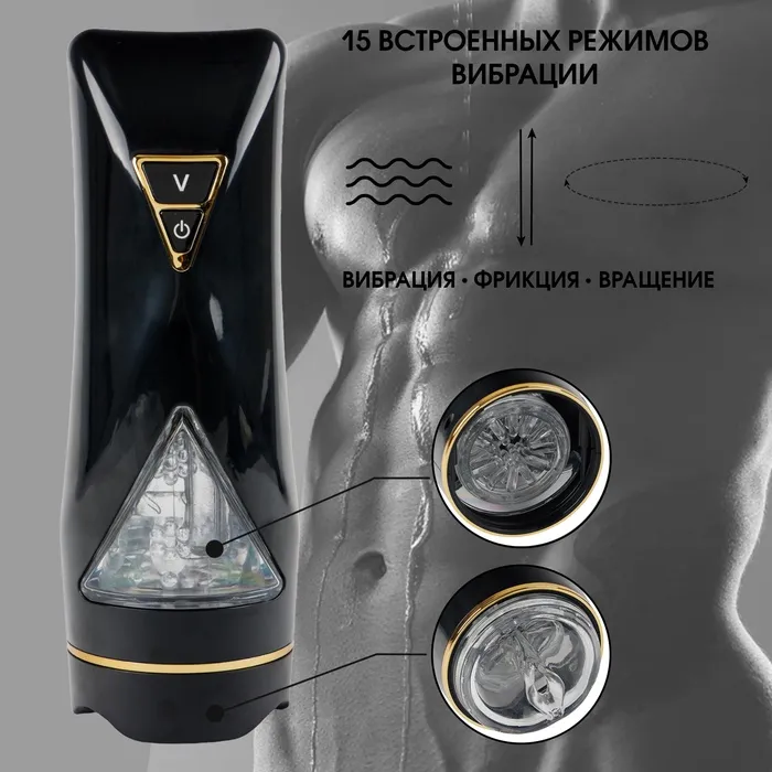Мастурбатор фрикция, вращение, вибрация, 15 режимов, АКБ, ЗУ USB, черный — Характеристики