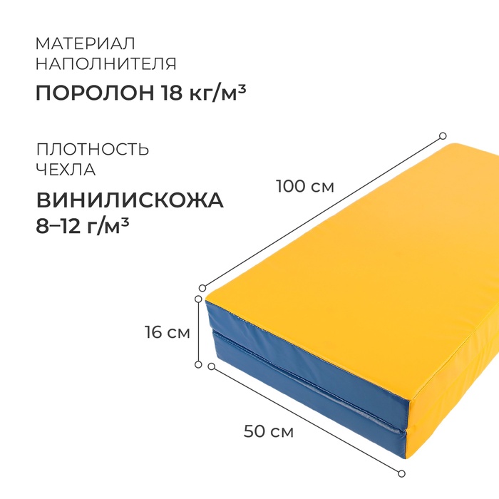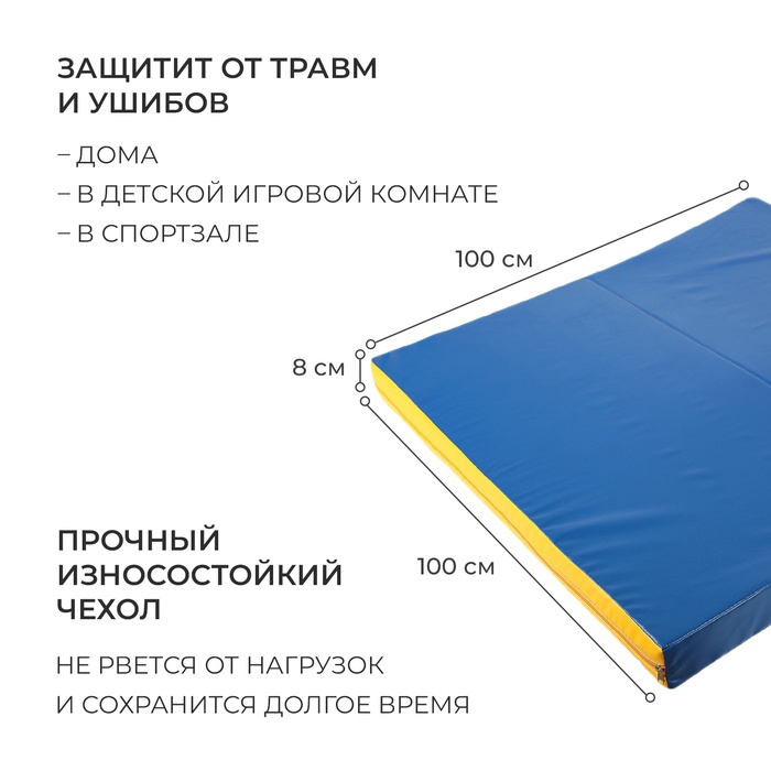 Мат, 100х100х8 см, 1 сложение, цвет синий/жёлтый — Характеристики