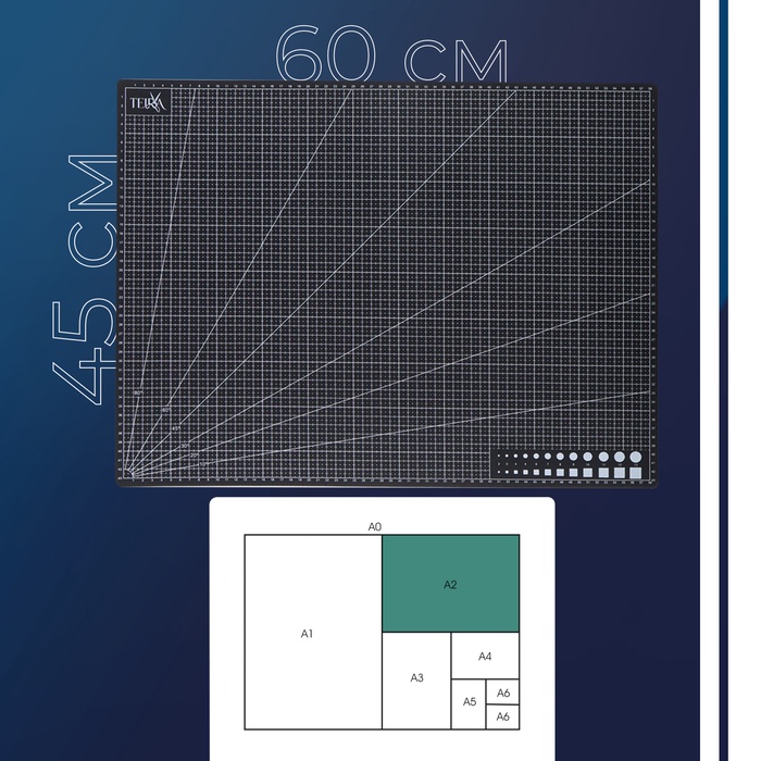 Мат для резки TEIRA, пятислойный, 60×45 см, А2, чёрный — Характеристики