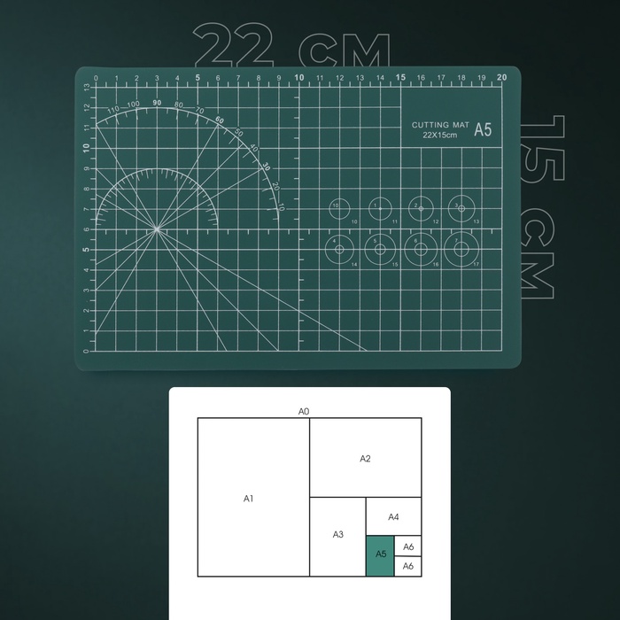 Мат для резки, трёхслойный, 22×15 см, А5, зелёный — Характеристики