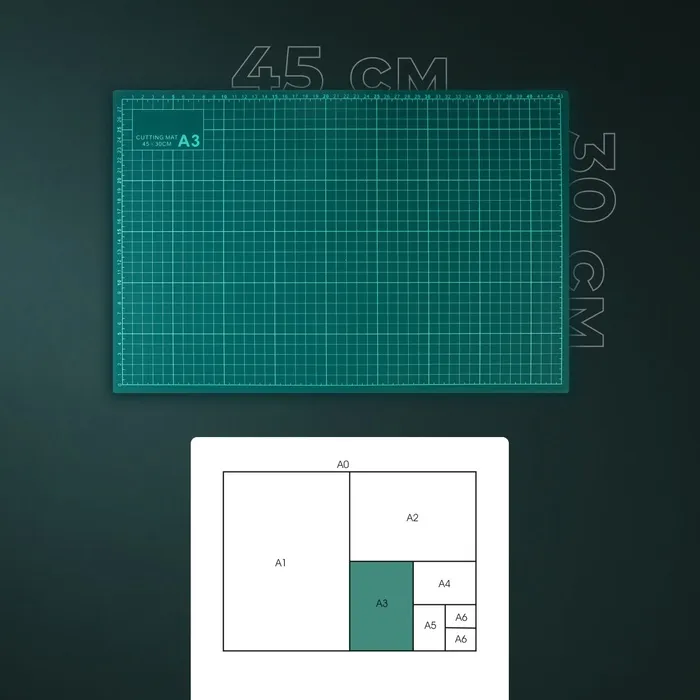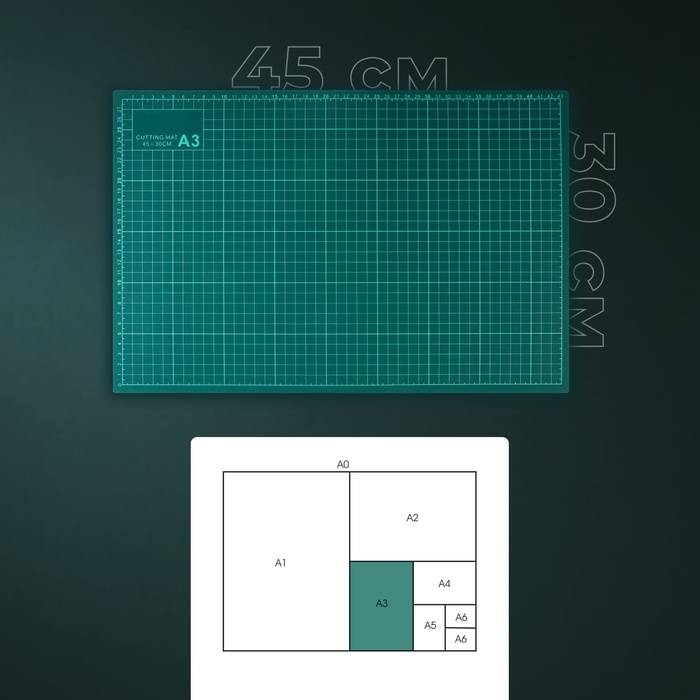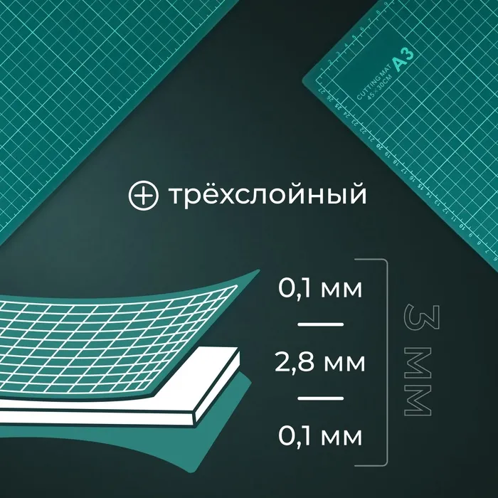 Мат для резки, трёхслойный, 45×30 см, А3, зелёный — Характеристики