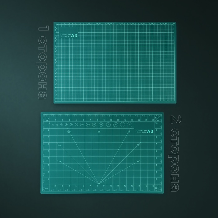Двухстороннее использование: с одной стороны на мате нанесены деления в сантиметрах, что удобно при работе с метрической системой измерений, а с другой стороны — деления в дюймах, что помогает при работе с имперской системой измерений.