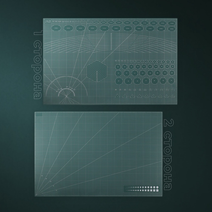 Двухстороннее использование: с одной стороны на мате нанесены деления в сантиметрах, что удобно при работе с метрической системой измерений, а с другой стороны — деления в дюймах, что помогает при работе с имперской системой измерений.