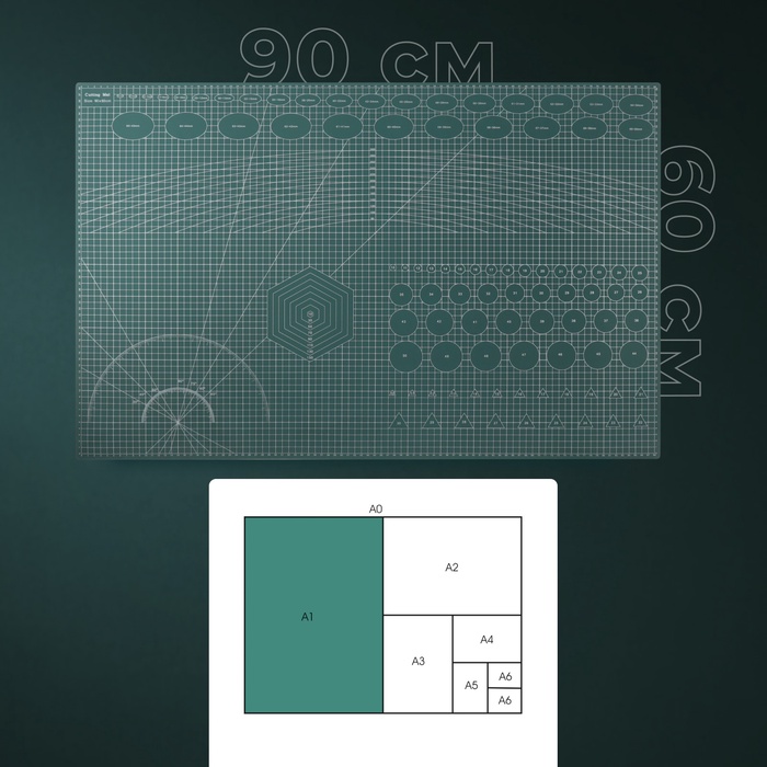 Мат для резки, трёхслойный, 90×60 см, А1, зелёный — Характеристики