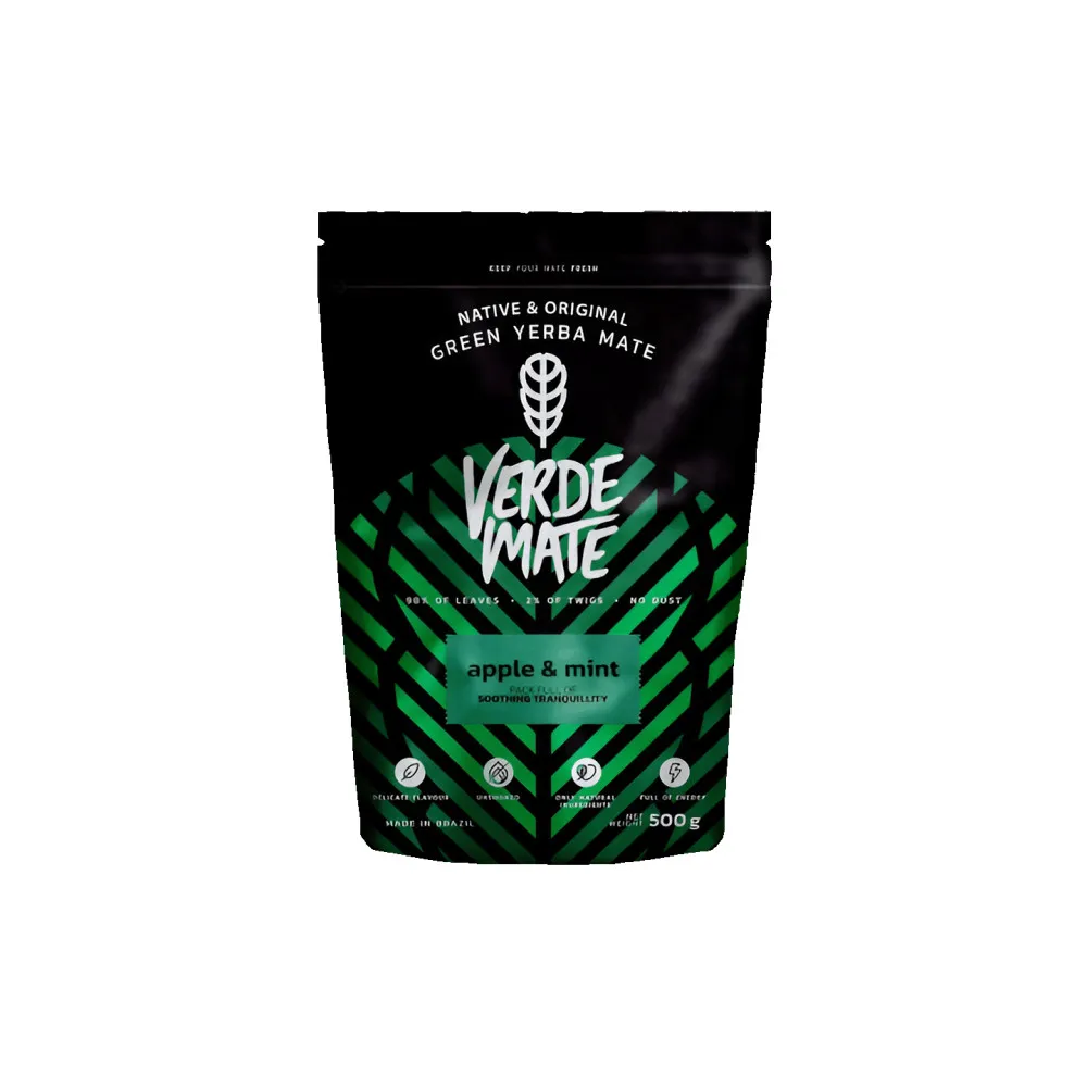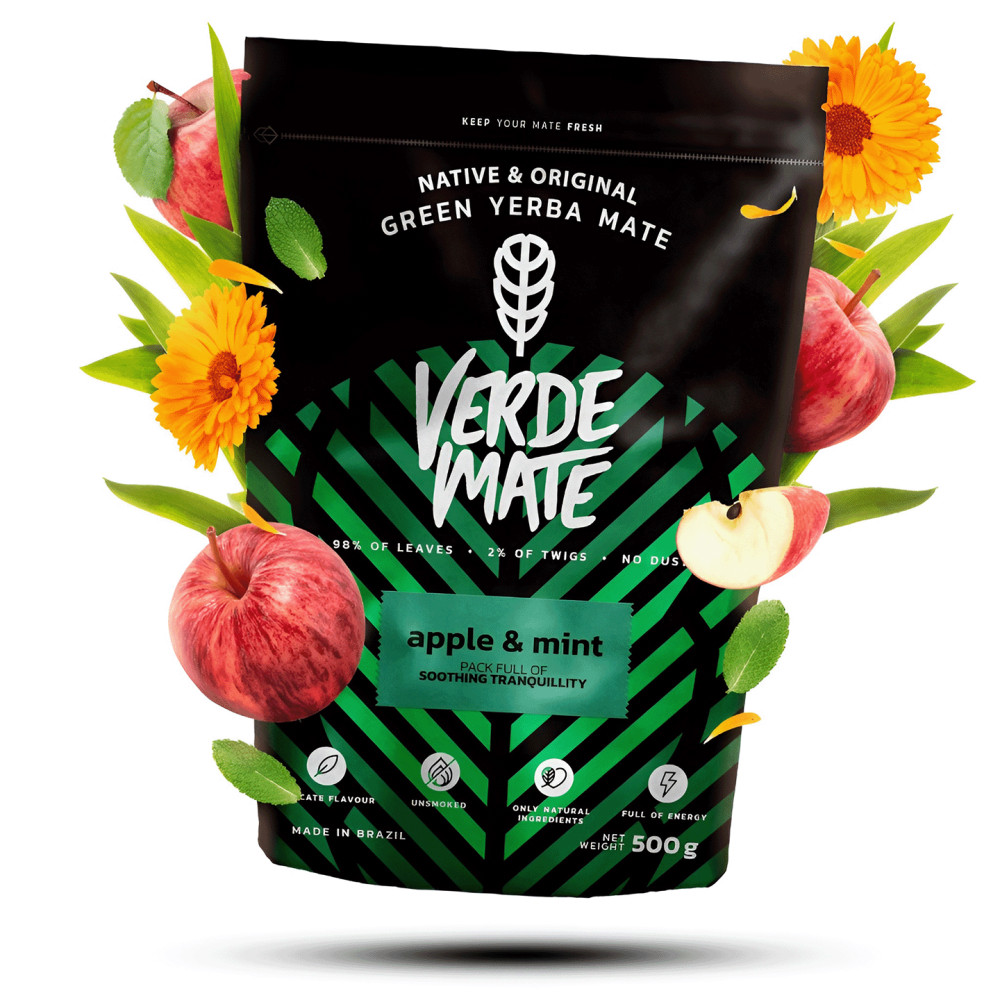 Mate Verde Green — это уникальная смесь сочного зелёного яблока и свежей мяты, создающая освежающий и бодрящий вкус.