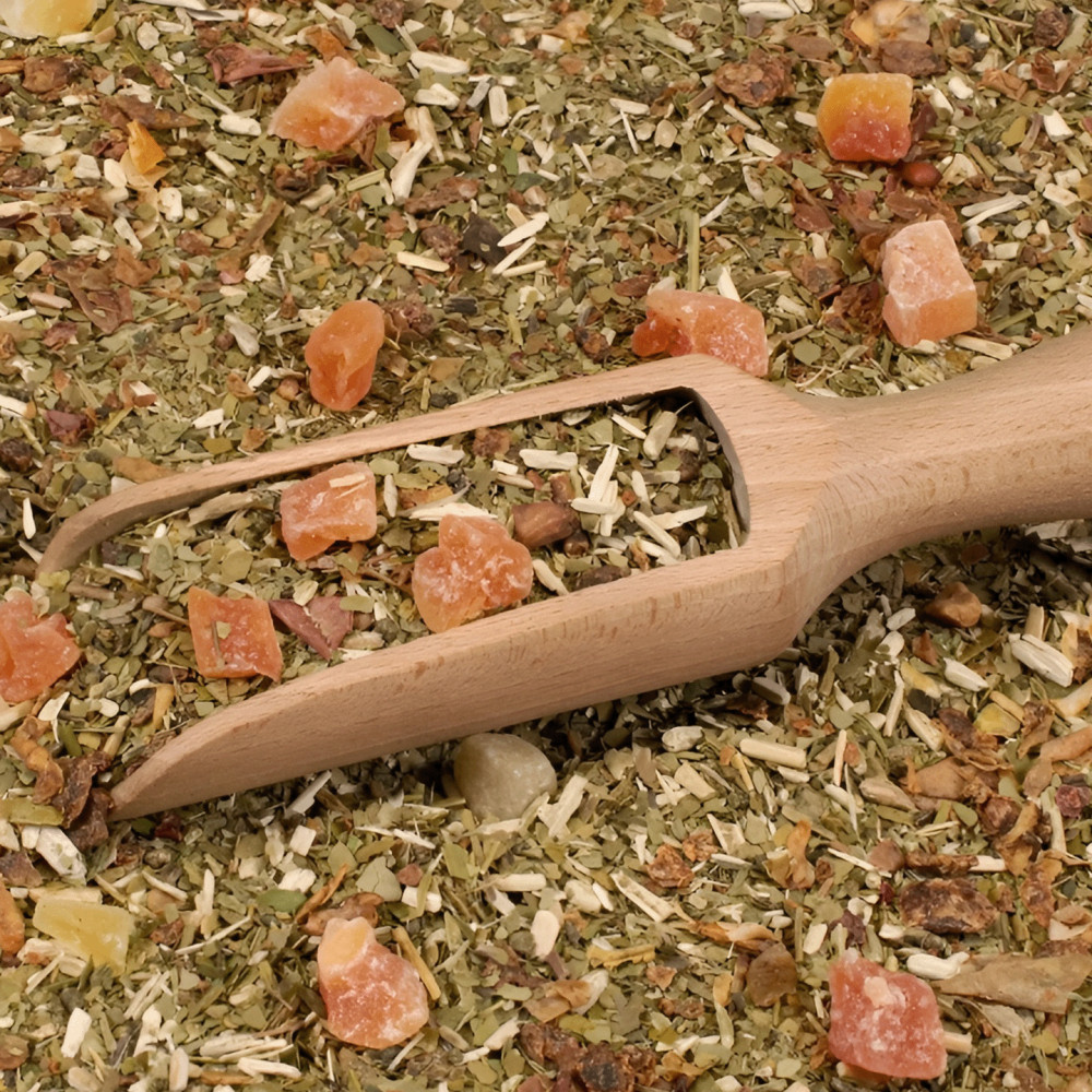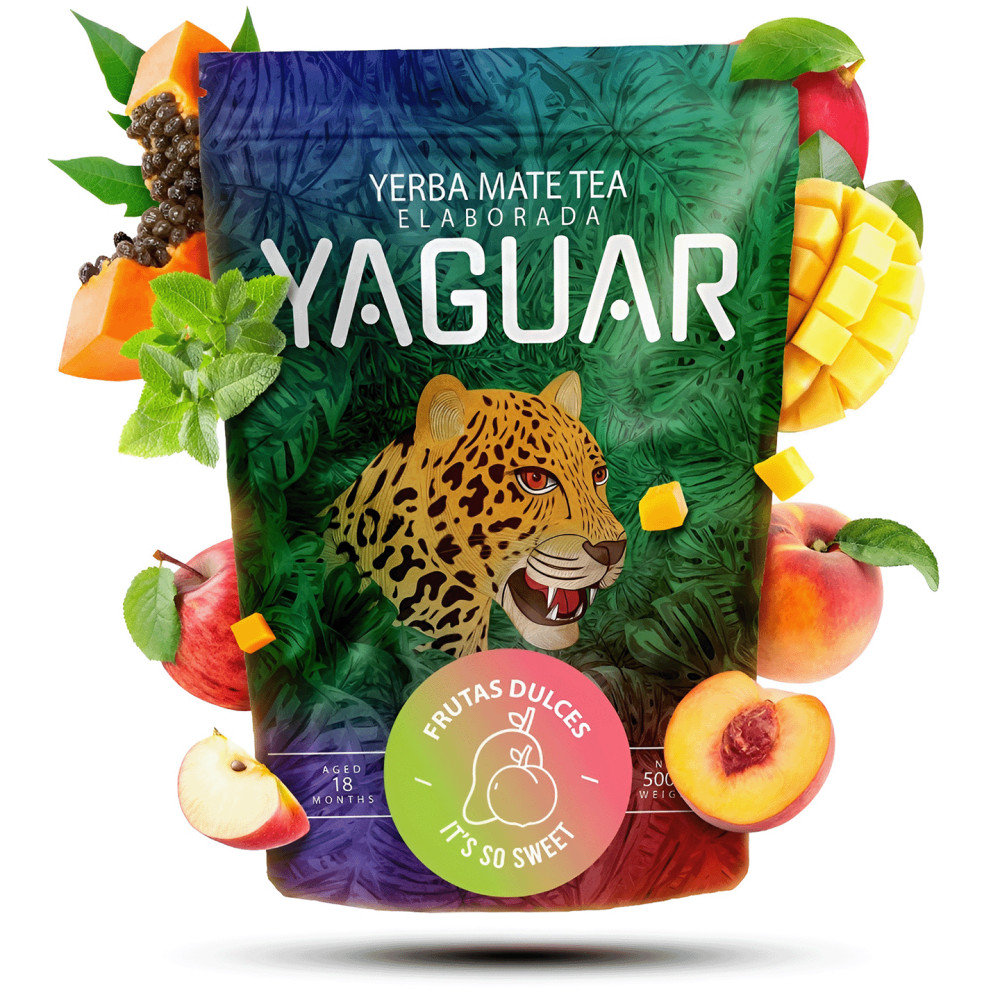 “Yaguar Frutas Dulces” – это сочная и освежающая смесь мате, которая переносит вас в солнечную атмосферу Южной Америки. В этой смеси первоклассный бразильский мате дополнен сладким яблоком и засахаренной папайей. Легкий оттенок мяты добавляет освежающую нотку, создавая мягкий, живой и тропический настой.