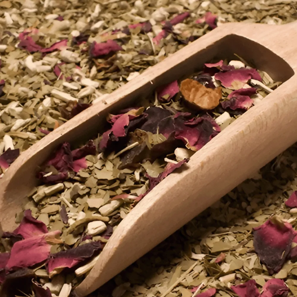 Ингредиенты: мате 85,4 %, клубника 10 %, плоды шиповника, лепестки роз, ароматизатор. Может содержать арахис, орехи и злаки, содержащие глютен.