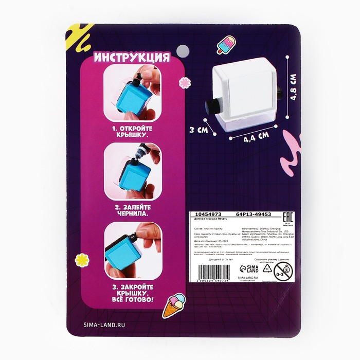 Печать влючает в себя 100 примеровРазмер штампа 4,4 х 4,8 смЧернила в комплектеКак пользоваться штампом?: