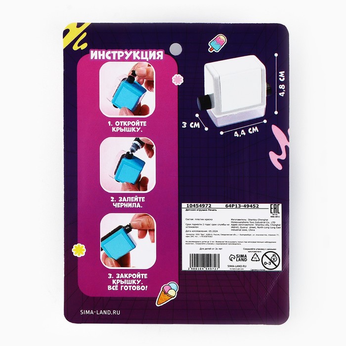 Печать влючает в себя 100 примеровРазмер штампа 4,4 х 4,8 смЧернила в комплектеКак пользоваться штампом?:
