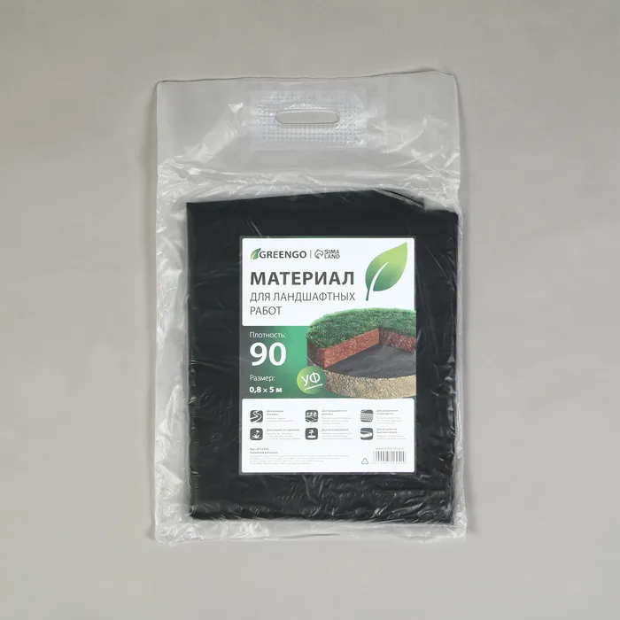 Материал для ландшафтных работ, 5 × 0,8 м, плотность 90 г/м², спанбонд с УФ-стабилизатором, чёрный, Greengo, Эконом 30% — Характеристики