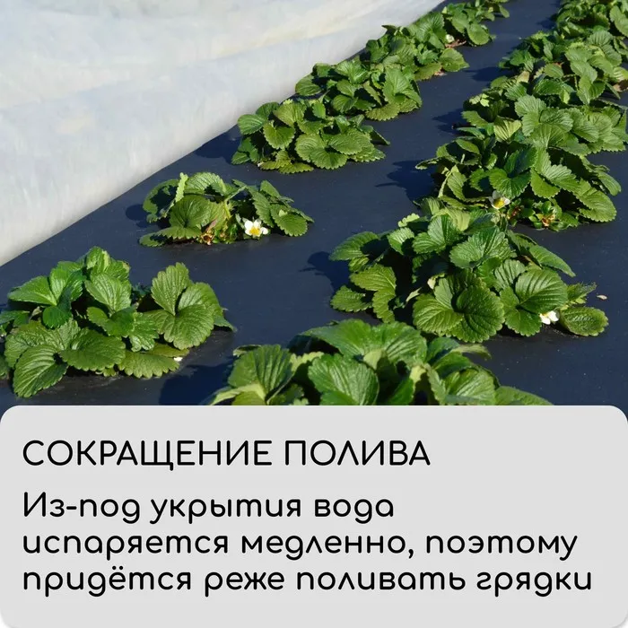 - Влага медленнее испаряется из-под материала, поэтому можно реже поливать.