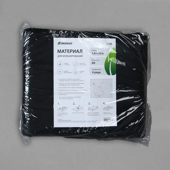 Материал мульчирующий, с перфорацией (4 ряда), 20×1.6 м, плотность 80 г/м², спанбонд с УФ-стабилизатором, чёрный, Greengo, Эконом 30% — Характеристики
