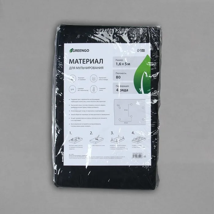 Материал мульчирующий, с перфорацией, 5×1.6 м, плотность 80 г/м², спанбонд с УФ-стабилизатором, чёрный, Greengo, Эконом 30% — Характеристики