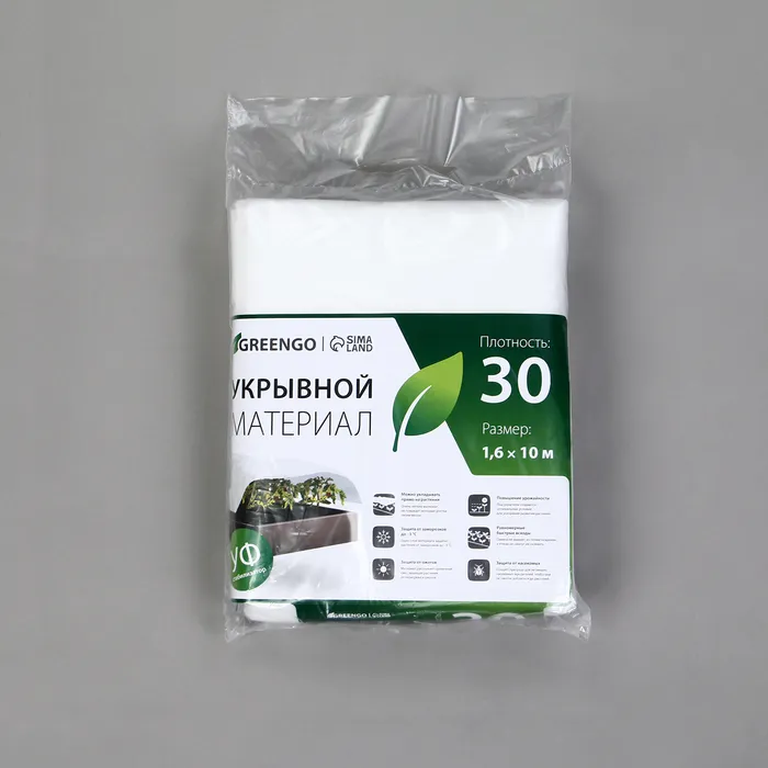 Материал укрывной, 10×1.6 м, плотность 30 г/м², спанбонд с УФ-стабилизатором, белый, Greengo, Эконом 30% — Характеристики