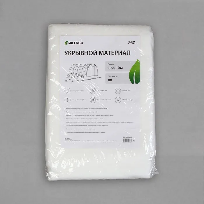 Материал укрывной, 10×1.6 м, плотность 80 г/м², спанбонд с УФ-стабилизатором, белый, Greengo, Эконом 30% — Характеристики