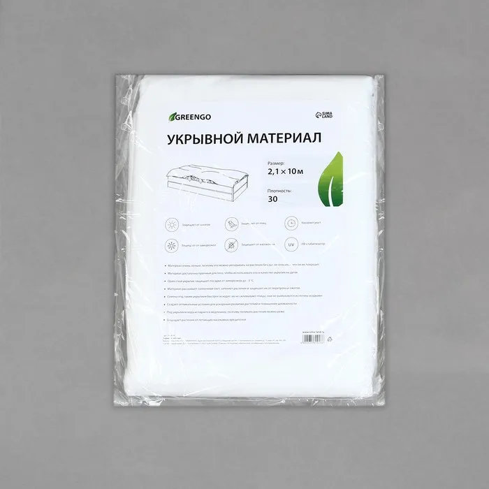 Материал укрывной, 10×2.1 м, плотность 30 г/м², белый, спанбонд с УФ-стабилизатором, Greengo, Эконом 30% — Характеристики