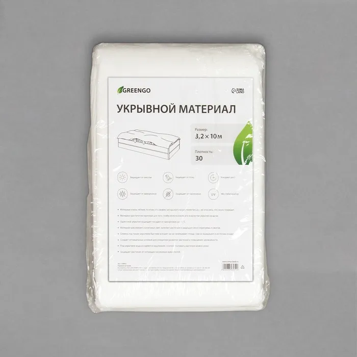 Материал укрывной, 10×3.2 м, плотность 30 г/м², спанбонд с УФ-стабилизатором, белый, Greengo, Эконом 30% — Характеристики