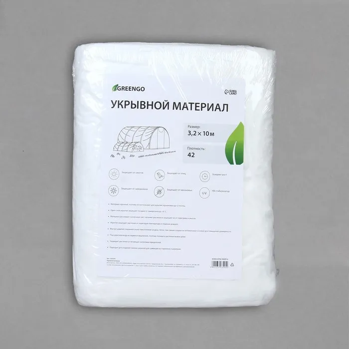 Материал укрывной, 10×3.2 м, плотность 42 г/м², спанбонд с УФ-стабилизатором, белый, Greengo, Эконом 30% — Характеристики
