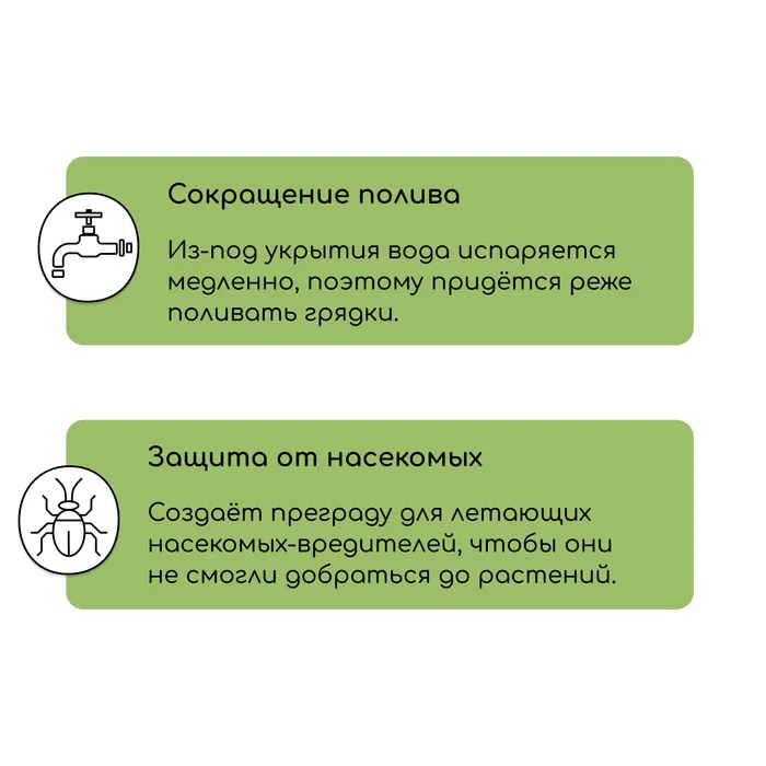 - Укрытие защищает растения от перепадов температуры и ледяных дождей.
