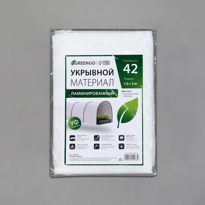 Материал укрывной, 5 × 1,6 м, ламинированный, плотность 42 г/м², спанбонд с УФ-стабилизатором, белый, Greengo — Характеристики