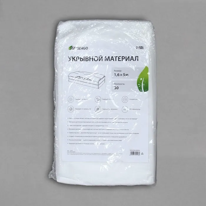Материал укрывной, 5×1.6 м, плотность 30 г/м², спанбонд с УФ-стабилизатором, белый, Greengo, Эконом 30% — Характеристики