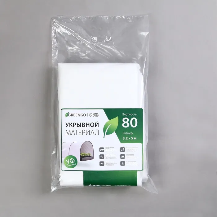 Материал укрывной, 5×3.2 м, плотность 80 г/м², спанбонд с УФ-стабилизатором, белый, Greengo, Эконом 30% — Характеристики