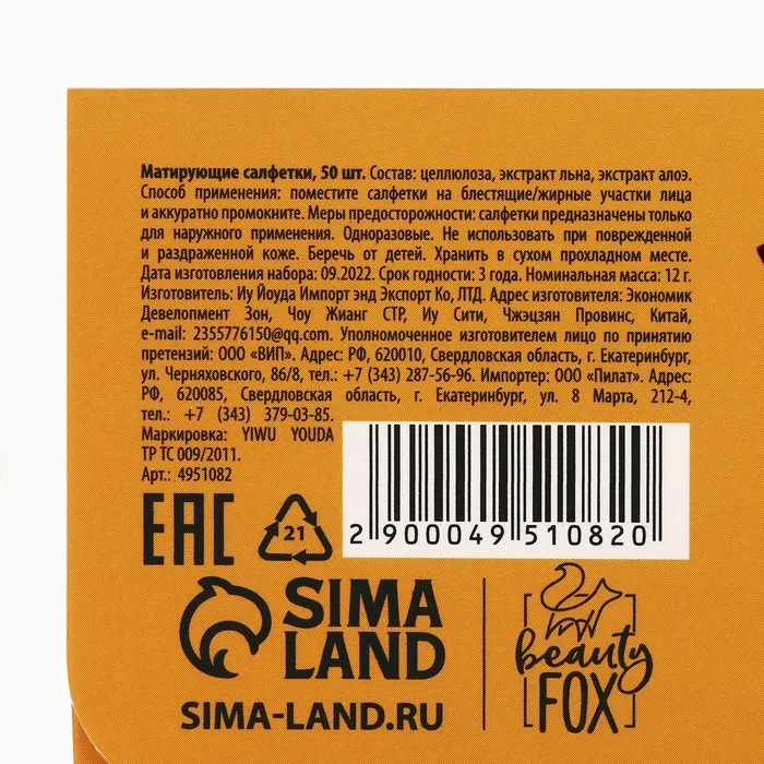 Матирующие салфетки для лица Yes, GIRL, yes, 50 шт, BEAUTY FOX — Характеристики