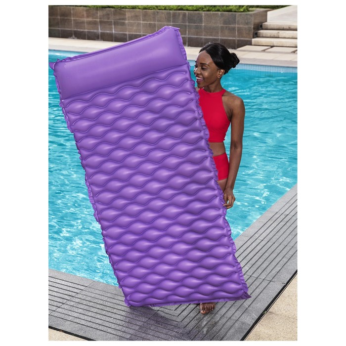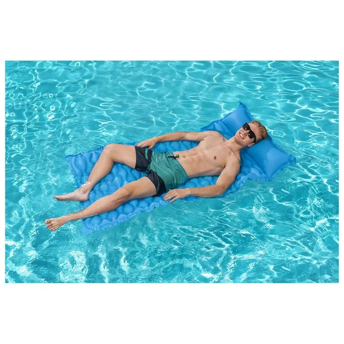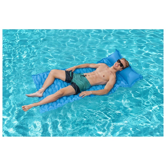 Надувной матрас подойдёт для отдыха в бассейне и открытых водоёмах. Модель оснащена двумя воздушными камерами и подушкой для комфортного отдыха. В комплект входит ремонтная заплатка.
