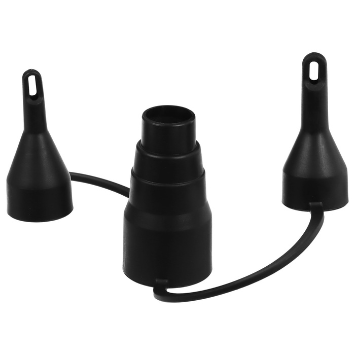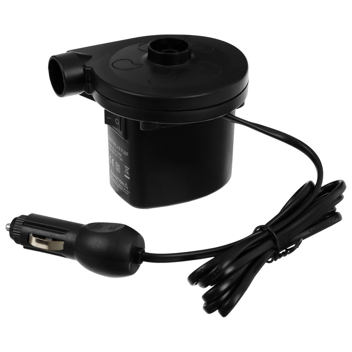 - Насос с тремя насадками работает от прикуривателя автомобиля и упрощает процесс накачивания всей конструкции.