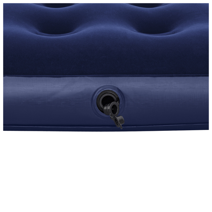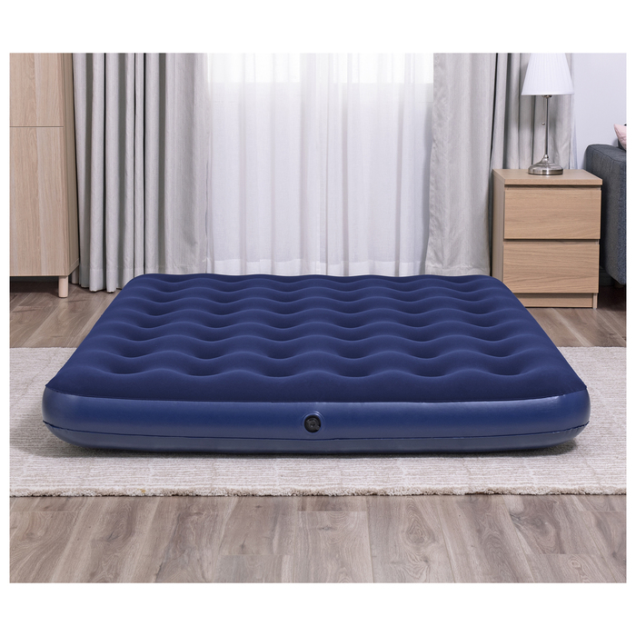 Когда нужно разместить гостей, но в доме нет лишнего спального места, вас выручит надувной матрас. Прочные перегородки внутри обеспечивают необходимую упругость. С велюрового покрытия, приятного на ощупь, не скатывается постельное бельё. Изделие имеет сдержанный дизайн, классическая расцветка позволяет ему хорошо вписываться в любой интерьер. Данную модель можно назвать настоящей надувной кроватью, так как она не уступает в комфорте обычным пружинным матрасам. Подходит также для использования на открытом воздухе.