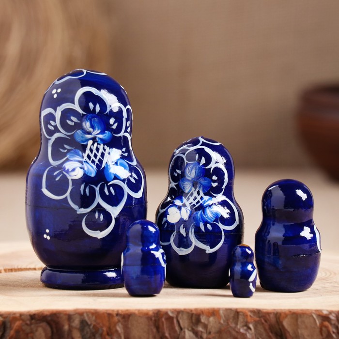 Матрёшка дерево «Гжель», синее платье, 5 кукольная, 9.5-11 см — Характеристики