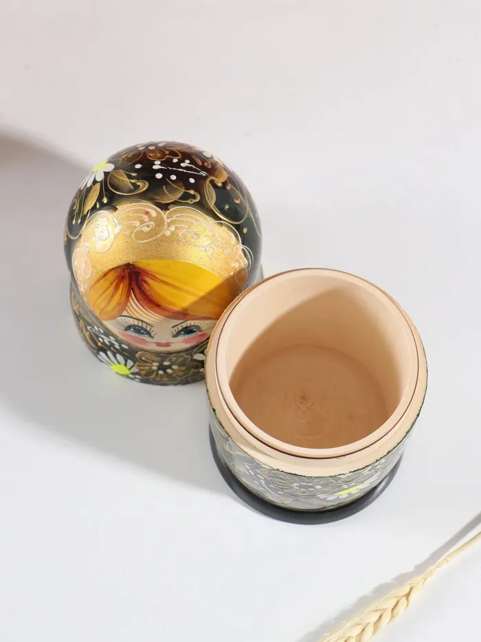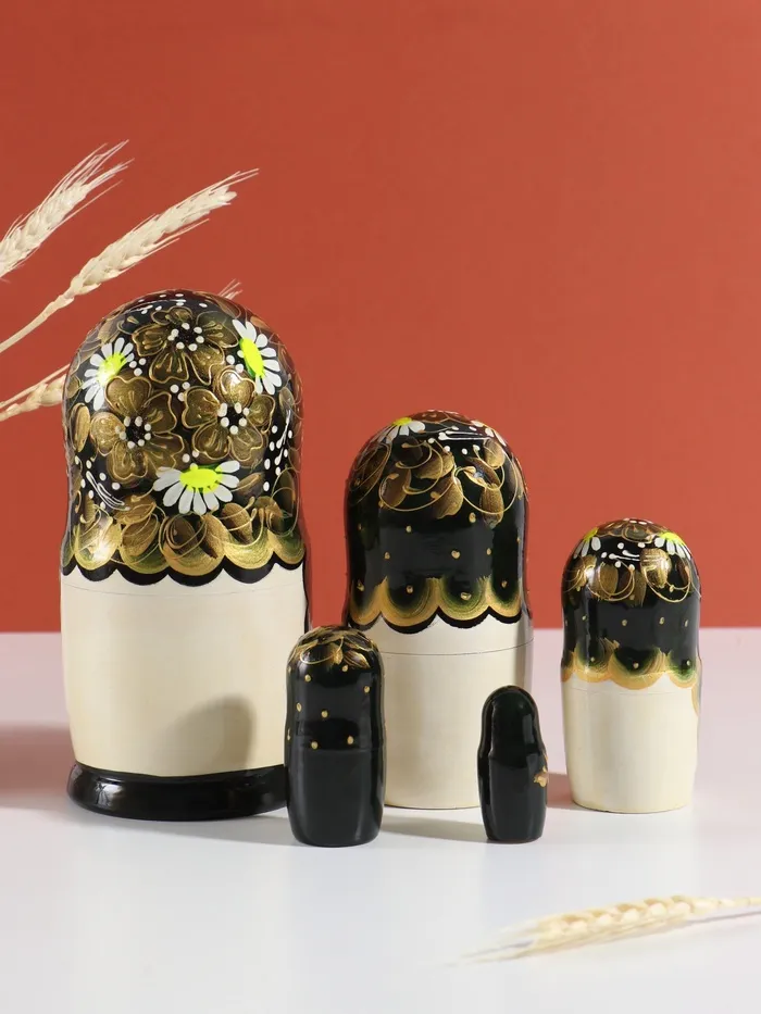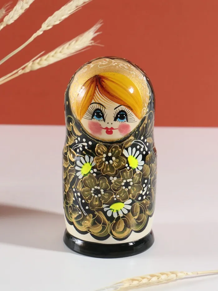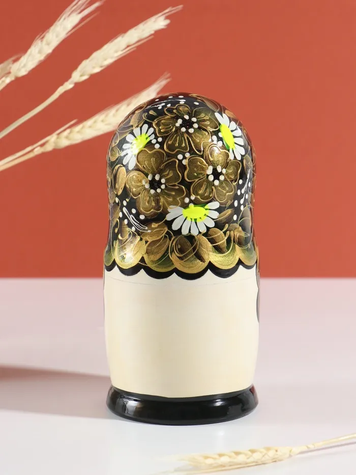 Погрузитесь в мир традиционного русского искусства с этой изысканной деревянной красавицей. Пять кукол, скрывающихся друг в друге, раскроют перед вами всю глубину народного мастерства — от изящной классической формы до тонкой художественной росписи в лучших традициях промысла.