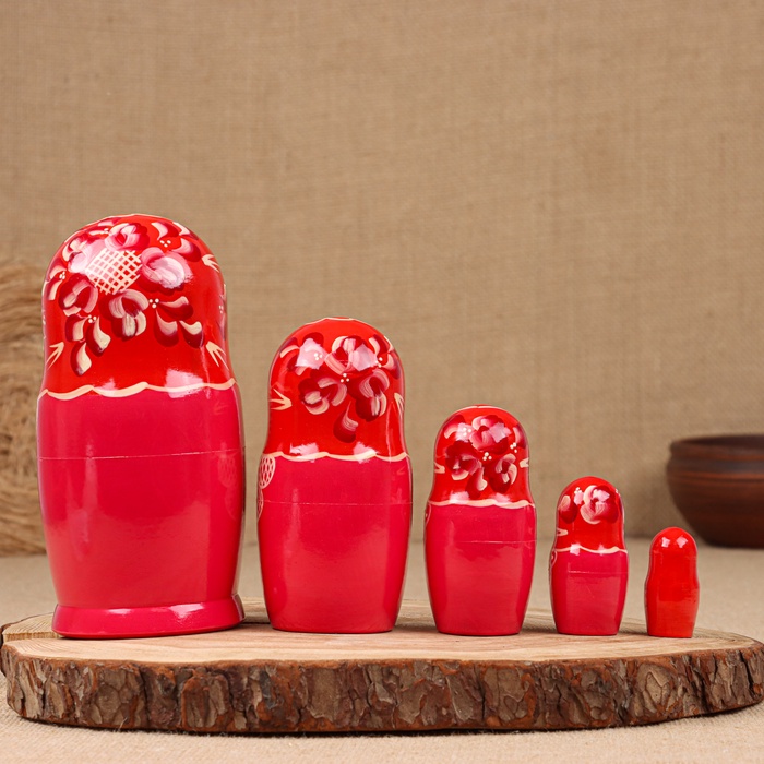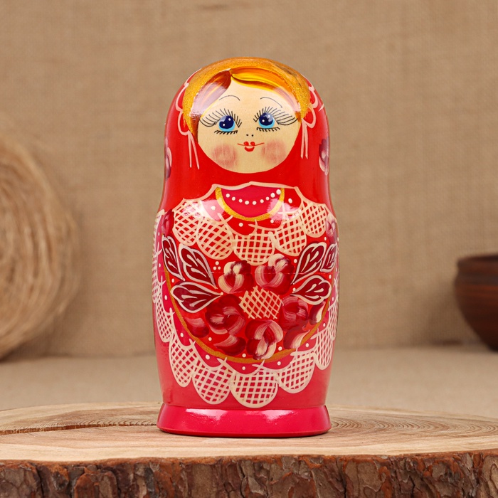 Матрёшка дерево «Надя», красно-розовое платье, 5-кукольная, 19 см — Характеристики
