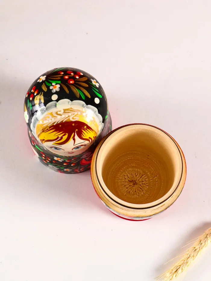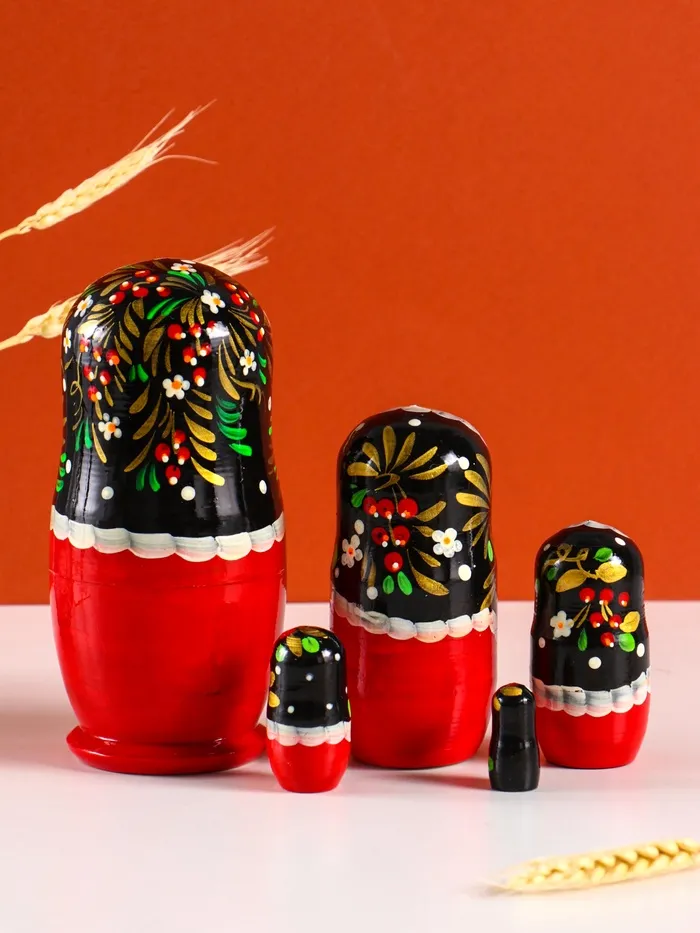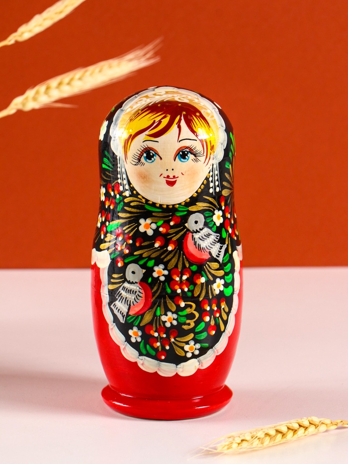 Идеальные пропорции классической формы и высота 15 см делают этот набор особенно удобным для детских рук, превращая знакомство с народным творчеством в увлекательную игру. Тонкая художественная роспись с изображением птиц — символ счастья и добрых вестей в русской культуре.