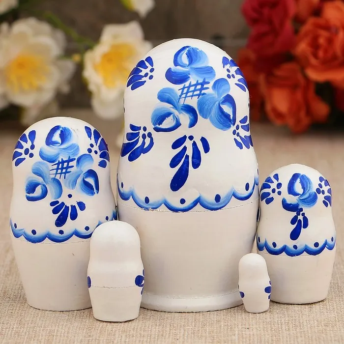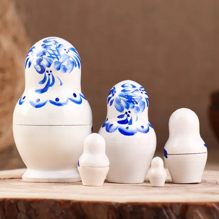 Матрёшка «Гжель», белое платье, 5 кукольная, 10 см — Характеристики