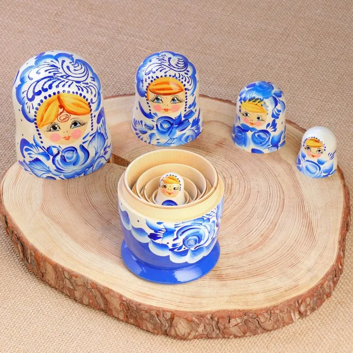 Матрёшка «Гжель», синее платье, 5 кукольная, 18 см — Характеристики