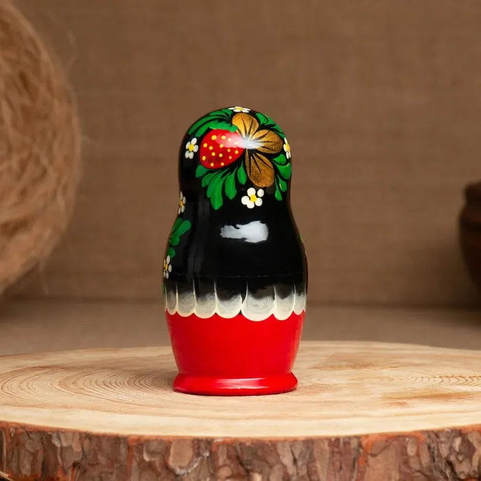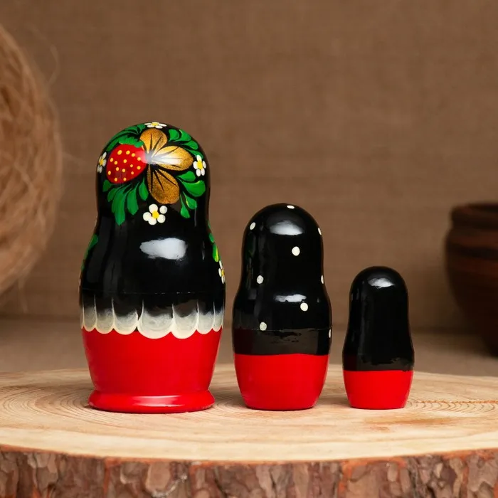 Матрёшка «Земляничка», чёрный платок, 3 кукольная, 10 см — Характеристики