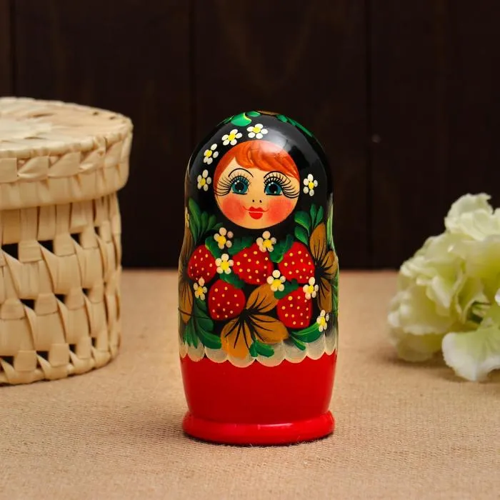 Матрёшка «Земляничка», красное платье, 5 кукольная, 15 см — Характеристики